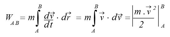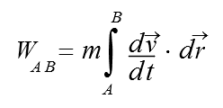 Arbeit bei Verschiebung der Kraft längs einer Raumkurve von A nach B.