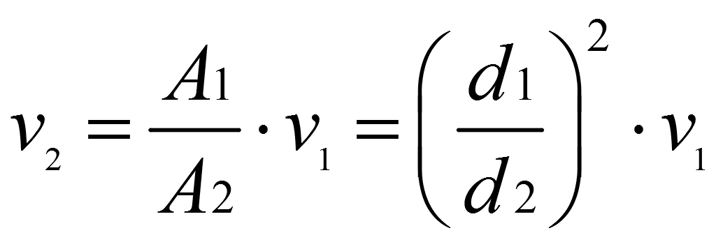 A(1) . v(1) = A(2) . v(2) (Durchflussgesetz, Kontinuitätsgleichung)
